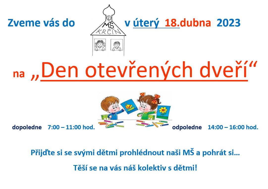 Níže naleznete info ke dni otevřených dvěří v MŠ Krčín.