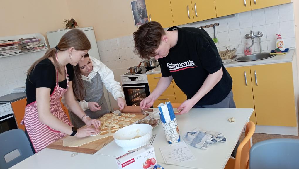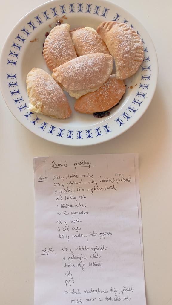 Deváťáci, kteří se učí rusky si v rámci probíraného tématu o jídle zkusili sami uvařit pár typických ruských jídel. Pustili jsme se do přípravy pirožků s tvarohem a povidly a také jsme uvařili pelmeně plněné mletým masem. Díky šikovným rukám našich kuchařek a kuchařů se vše povedlo na výbornou a všem moc chutnalo. :)