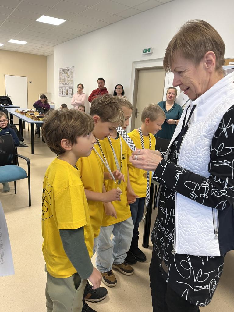 Ve středu 3. 12. 2025 se čtyři žáci z 1. stupně zúčastnili okresního kola šachového turnaje v Náchodě. Vybojovali skvělé 1. místo a tím si zajistili postup do krajského kola. Gratulujeme k fantastickému úspěchu!